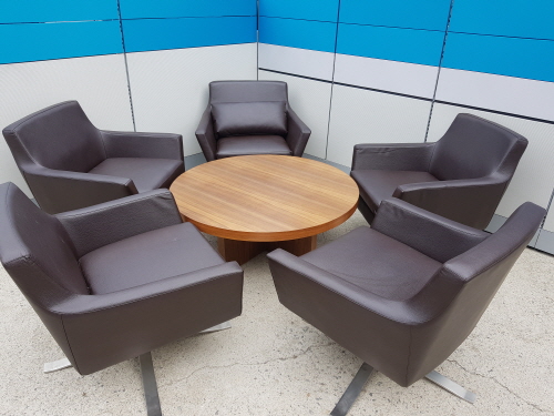 > 로비용 천연가죽 4인쇼파 세트